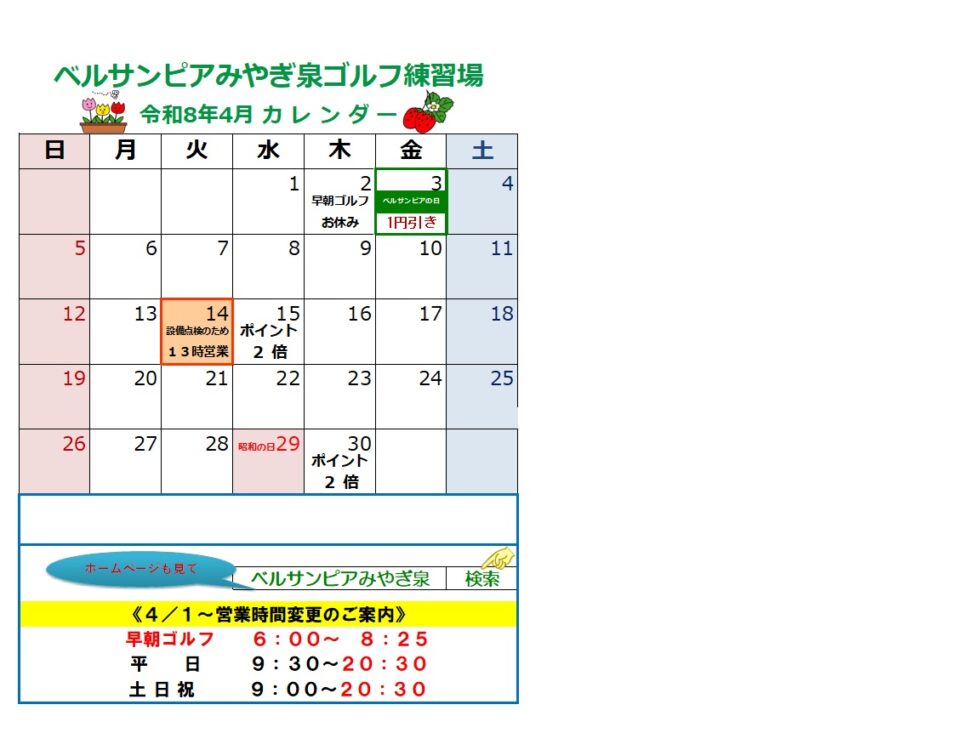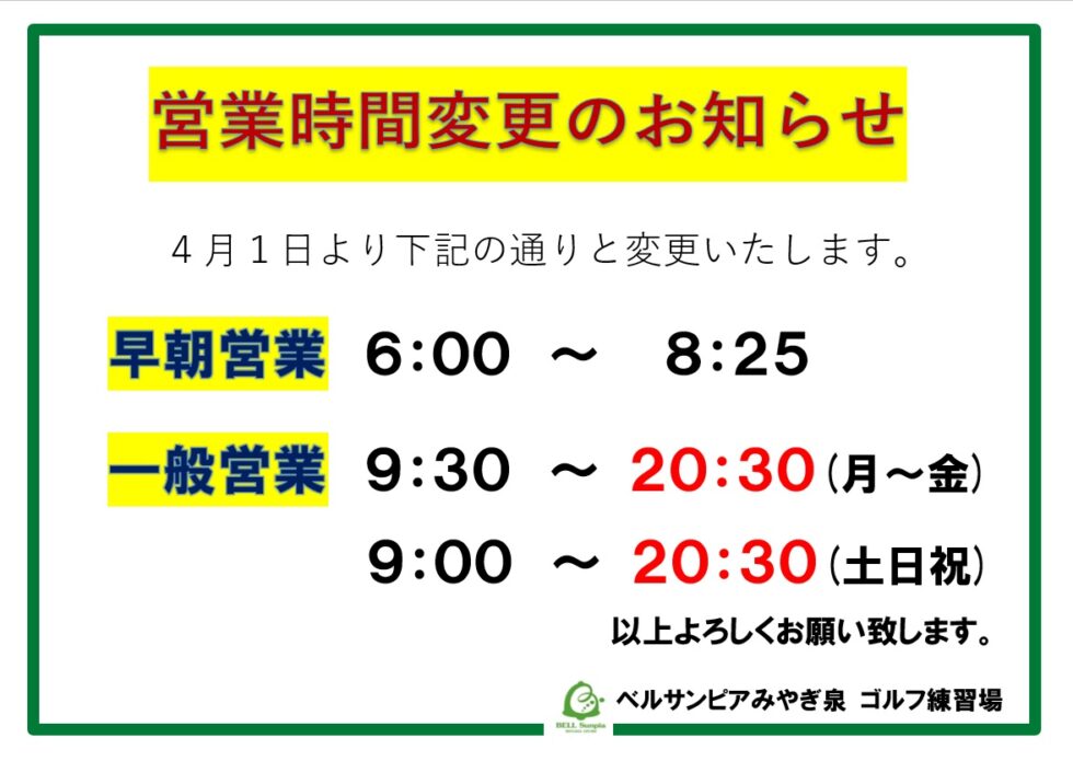 ゴルフ練習場からのお知らせ